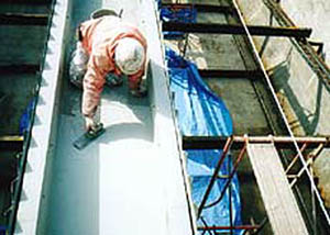 の使用量で2〜3回コテ塗りにより凸凹面を平滑に仕上げる。