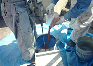 APCエマルジョンの主剤と硬化剤を撹拌機で1〜2分間よく混合する。