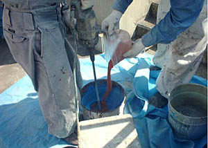 APCエマルジョンの主剤と硬化剤を撹拌機で1〜2分間よく混合する。