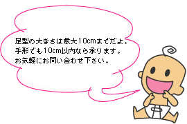 ※足形が9cm以上の場合は、プレートにメッセージが表示できません。